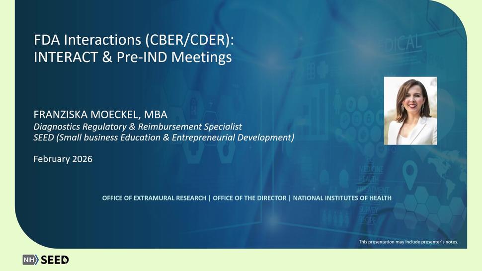 • Overview of INTERACT and pre-IND meetings at the Center for Biologics Evaluation and Research (CBER) and the Center for Drug Evaluation and Research (CDER)